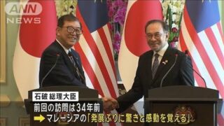 ANNニュース速報 石破総理マレーシア首相と会談 中国念頭に安全保障協力で一致(2025年1月10日) マレーシアを訪問している石破総理大臣はアンワル首相と会談し、中国が軍事拠点化を進める南シナ海問題などを巡って協議しました。石破総理大臣「喫緊の課題と致しまして東シナ海、南シナ海、中東、ミャンマー情勢等を取り上げてやり取りを行い、緊密に意思疎... 2025.01.10 ANNニュース速報動画
