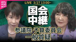 政治 【国会中継】参議院・予算委員会 一般質疑 ── 政治ニュースライブ[2026年3月27日午後](日テレNEWS LIVE) 姉妹ニュースサイト姉妹ニュースサイト2怖い話動画サイトお料理動画サイト修羅場ラバンバ面白動画サイト参議院・予算委員会の模様をライブ配信します◎一般質疑・13時00分~13時51分 奥村祥大議員 国民民主党・13時51分~14時30分 小林さ... 2026.03.28 政治